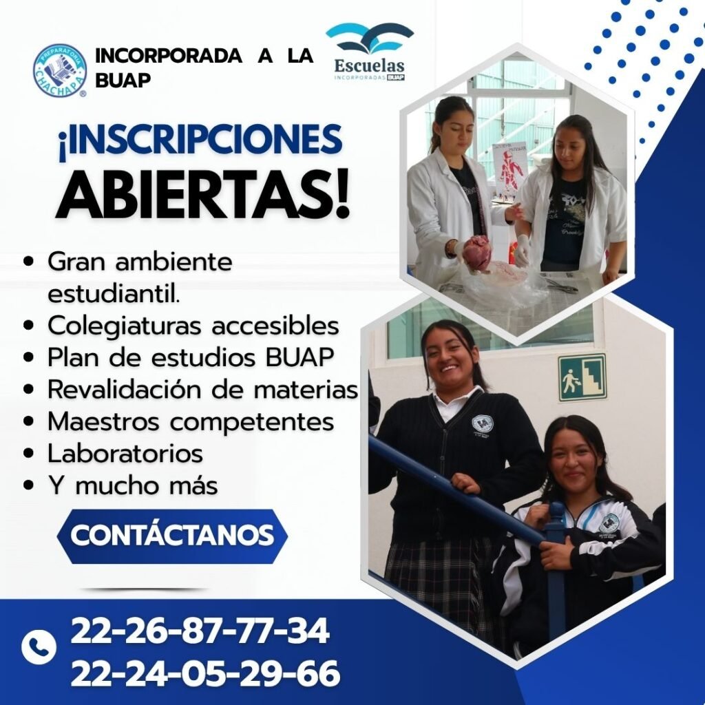 En Preparatoria Chachapa, estamos orgullosos de ser una institución educativa incorporada a la Benemérita Universidad Autónoma de Puebla (BUAP), lo que garantiza un plan de estudios de excelencia y el reconocimiento oficial de tus estudios.